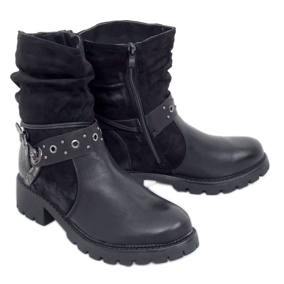 Inna marka Schwarz 4514 Schwarze Stiefel am Protektor