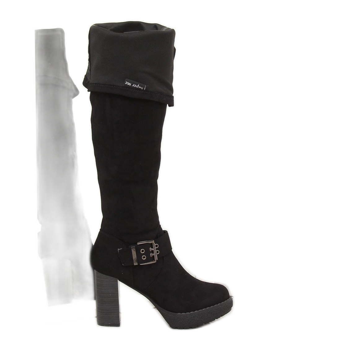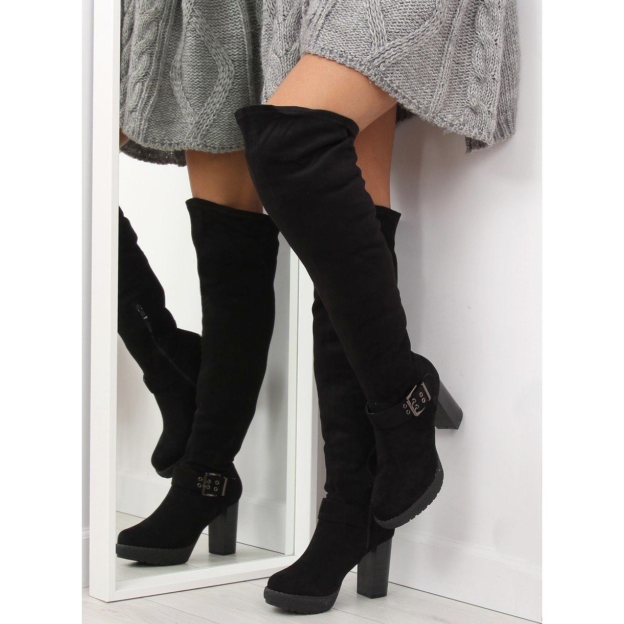 Inna marka Schwarz 862-GG Schwarze Plateaustiefel