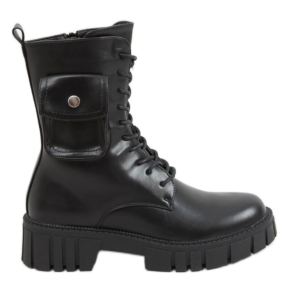 Wir präsentieren Damen-Schnürstiefel – Worker mit Tasche in klassischem Schwarz, die die perfekte Ergänzung zu jedem Alltags-Styling sind. Dieses Modell zeichnet sich nicht nur durch seinen universellen Schnitt aus, sondern auch durch seinen originellen Akzent in Form einer praktischen Tasche, der ihm einen einzigartigen Charakter verleiht.
