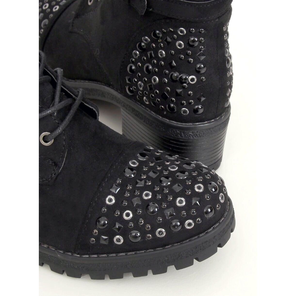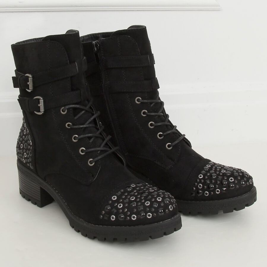 Wir präsentieren schwarze Worker-Stiefel Nr. 88063 Black – die perfekte Wahl für Frauen, die klassischen Stil mit etwas Rock-Wahnsinn verbinden möchten. Diese Schnürstiefelette mit Sohle und Protektor zeichnet sich durch auffällige Verzierungen aus. Glänzende Steine und Strasssteine verleihen ihnen einen einzigartigen Charakter, sodass sich jeder Besitzer wie ein echter Star fühlt.