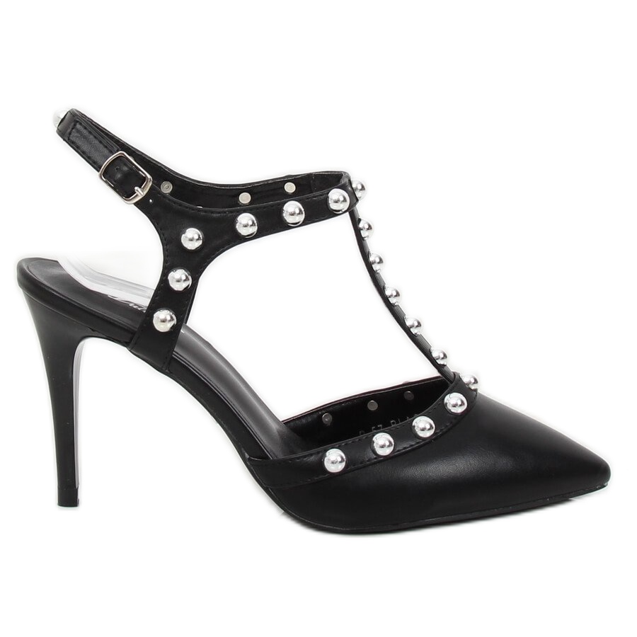 Entdecken Sie raffinierte Eleganz mit B-57 Black Nietenabsätzen! Diese schwarzen Damenpumps sind die perfekte Wahl für Frauen, die ihrem Styling einen einzigartigen Charakter verleihen möchten. Das Modell zeichnet sich durch einen offenen Absatz und interessante, mit Strasssteinen besetzte Riemen aus. Solche Details lassen die High Heels am Bein phänomenal aussehen, erregen Aufmerksamkeit und verleihen Selbstbewusstsein.