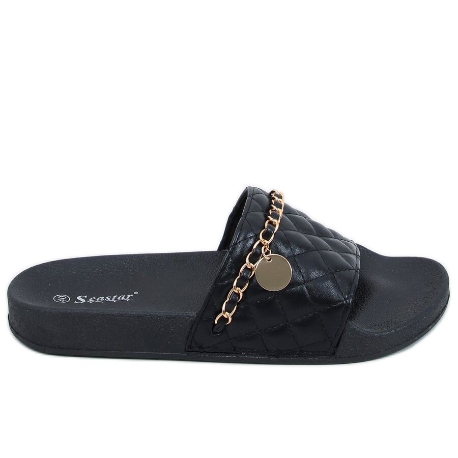 Inna marka Schwarz CK189P Schwarze Hausschuhe golden