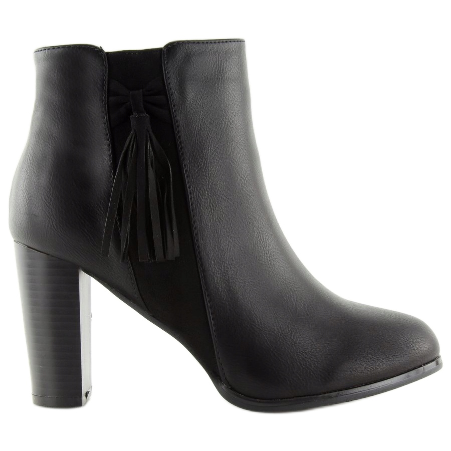 Entdecken Sie Eleganz und Komfort in einem dank der Stiefeletten F880 mit hohen Absätzen in Schwarz. Diese Damenstiefeletten mit einer Absatzhöhe von 8,5 cm sind die perfekte Ergänzung zu jedem Styling und verleihen ihm einen einzigartigen Charme. Eine dezente Verzierung in Form einer Schleife mit Fransen an der Seite des Obermaterials zieht die Aufmerksamkeit auf sich und ergänzt das Ganze, sodass Ihre Beine lang und schlank aussehen.