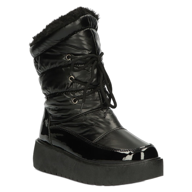 Wir präsentieren die schwarzen Schnür-Schneestiefel Filippo DBT3403, die die perfekte Wahl für Wintertage sind. Diese eleganten Stiefel zeichnen sich durch eine präzise Verarbeitung aus ökologischem Lackleder aus, die nicht nur für einen einzigartigen Look, sondern auch für Langlebigkeit sorgt.
