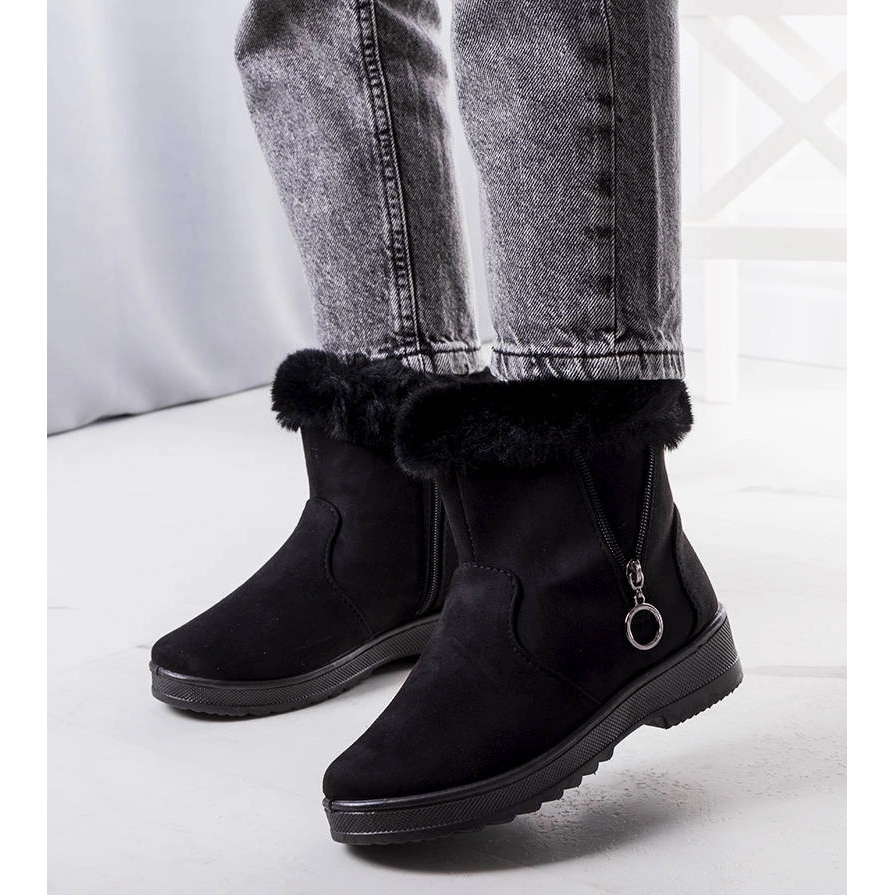 Suchen Sie bequeme und warme Winterschuhe? Catalina -Schneestiefel sind ein Vorschlag für jede Erkältung: Weiches Fell im Inneren sorgt für eine angenehme Erwärmung, und eine flache Plattform mit einer Höhe von 3 cm bietet Stabilität und Komfort bei langen Spaziergängen. Das äußere Material ist ökologisches Wildlederleder in einer klassischen schwarzen Farbe, die gut zu einer Jacke, Jeans oder einem Winterkleid passt.