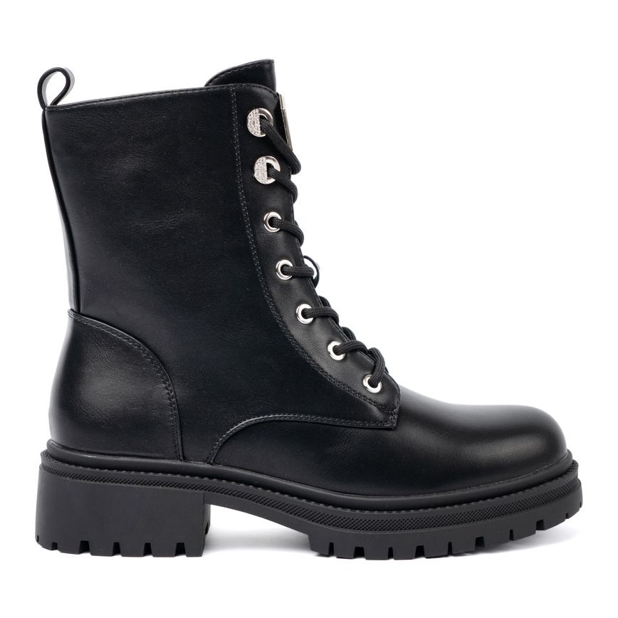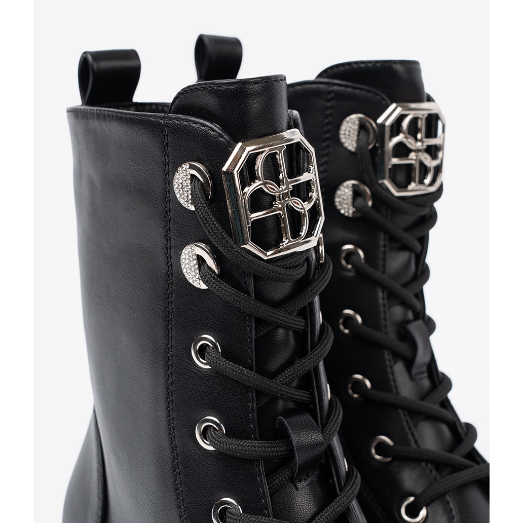 Dank der Fersenhöhe von 4,5 cm und einer flachen Ferse verbinden sich ästhetische Werte mit Funktionalität, was diese Stiefel täglich zu einer idealen Wahl macht. Sliped Slider und Schnürung erleichtern das Anlegen und Anpassen der Schuhe an den individuellen Bedürfnissen.