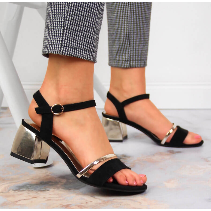 Entdecken Sie einzigartigen Stil und Komfort mit den schwarzen und goldenen Absatzsandalen von Sergio Leone. Diese eleganten Sandalen sind die perfekte Kombination aus modernem Design und hochwertiger Verarbeitung, die mit Sicherheit alle Blicke auf sich zieht und Ihre Individualität unterstreicht.