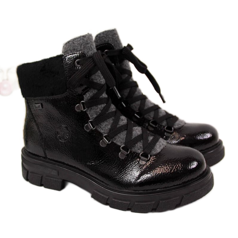 - Modell: Schwarz isolierte lackierte Stiefel W Rieker