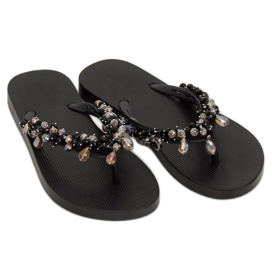 Inna marka Schwarz JH68 Schwarze Flip-Flops mit Perlen