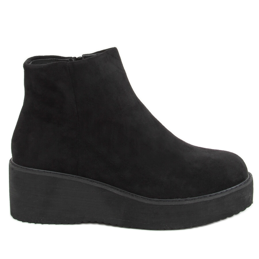 Entdecken Sie die Eleganz und den Komfort des Alltags-Stylings mit den schwarzen Keilstiefeletten E2381. Diese Damenstiefeletten aus Wildleder sind die perfekte Kombination aus modernem Design und Funktionalität. Dank leichter 6 cm hoher Keile und einer 3 cm hohen Plattform sorgen sie den ganzen Tag über für Komfort.
