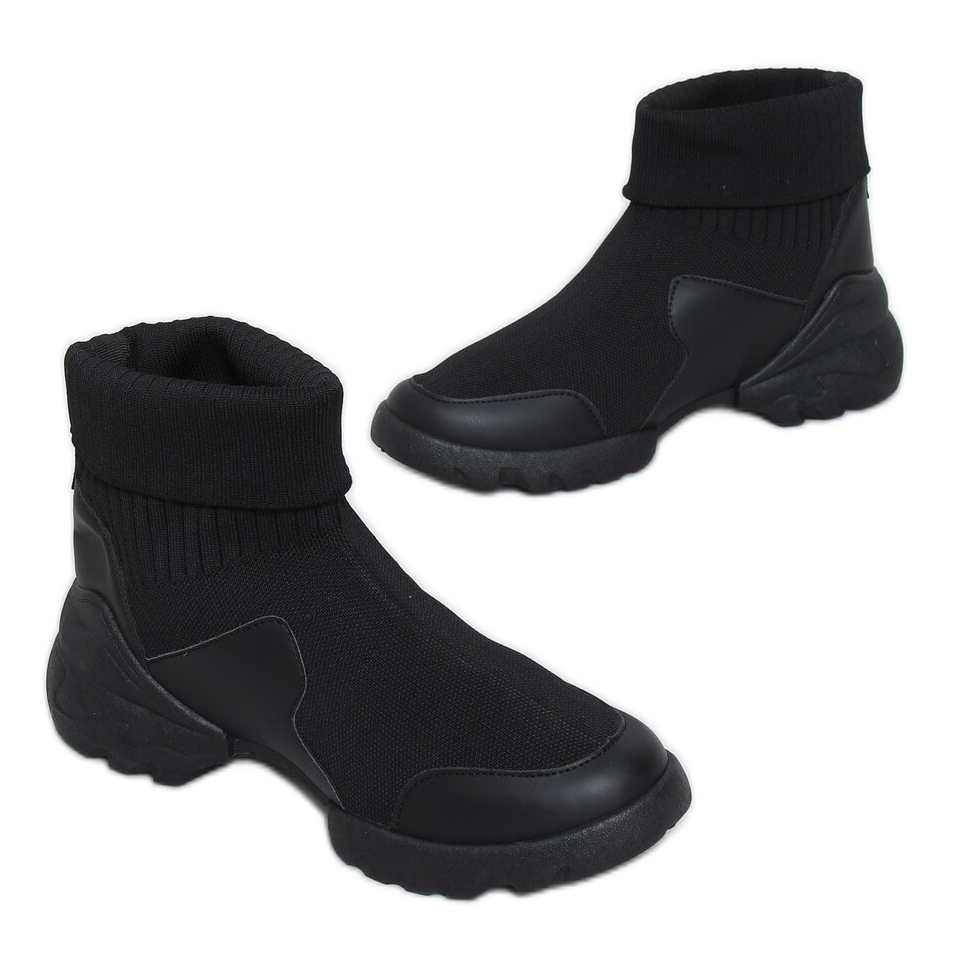 Inna marka Schwarz LA156 Schwarze Söckchen Sportschuhe