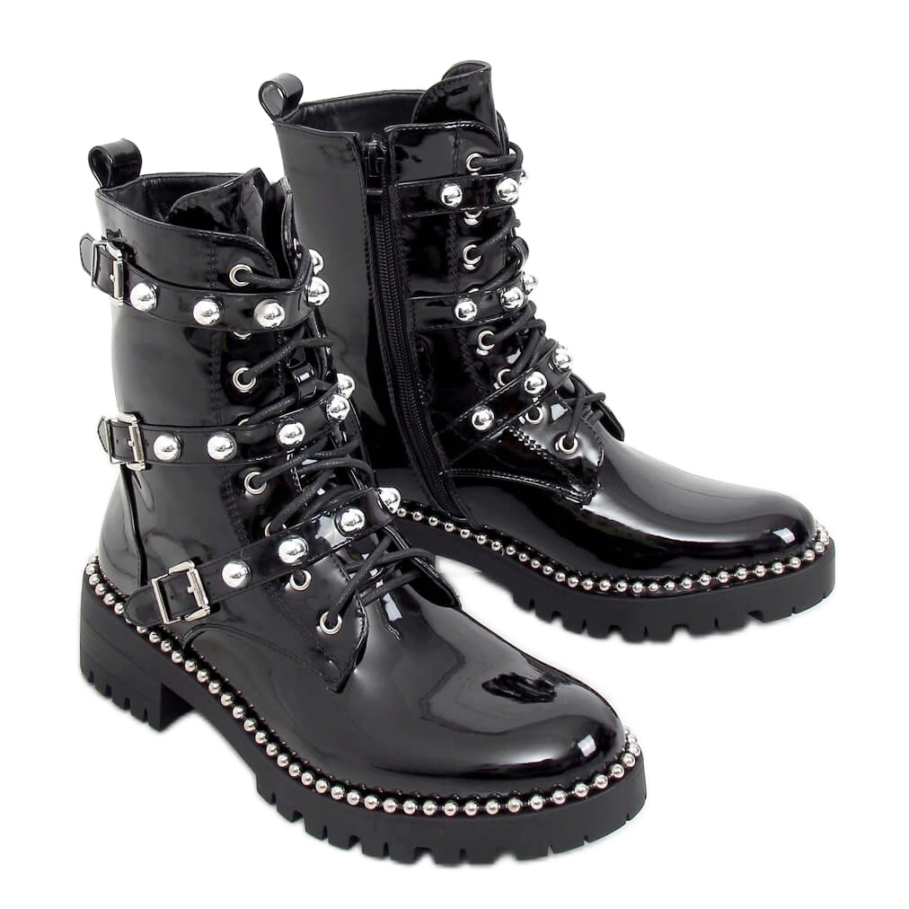 Inna marka Schwarz lackierte Stiefel NC1023 Schwarz