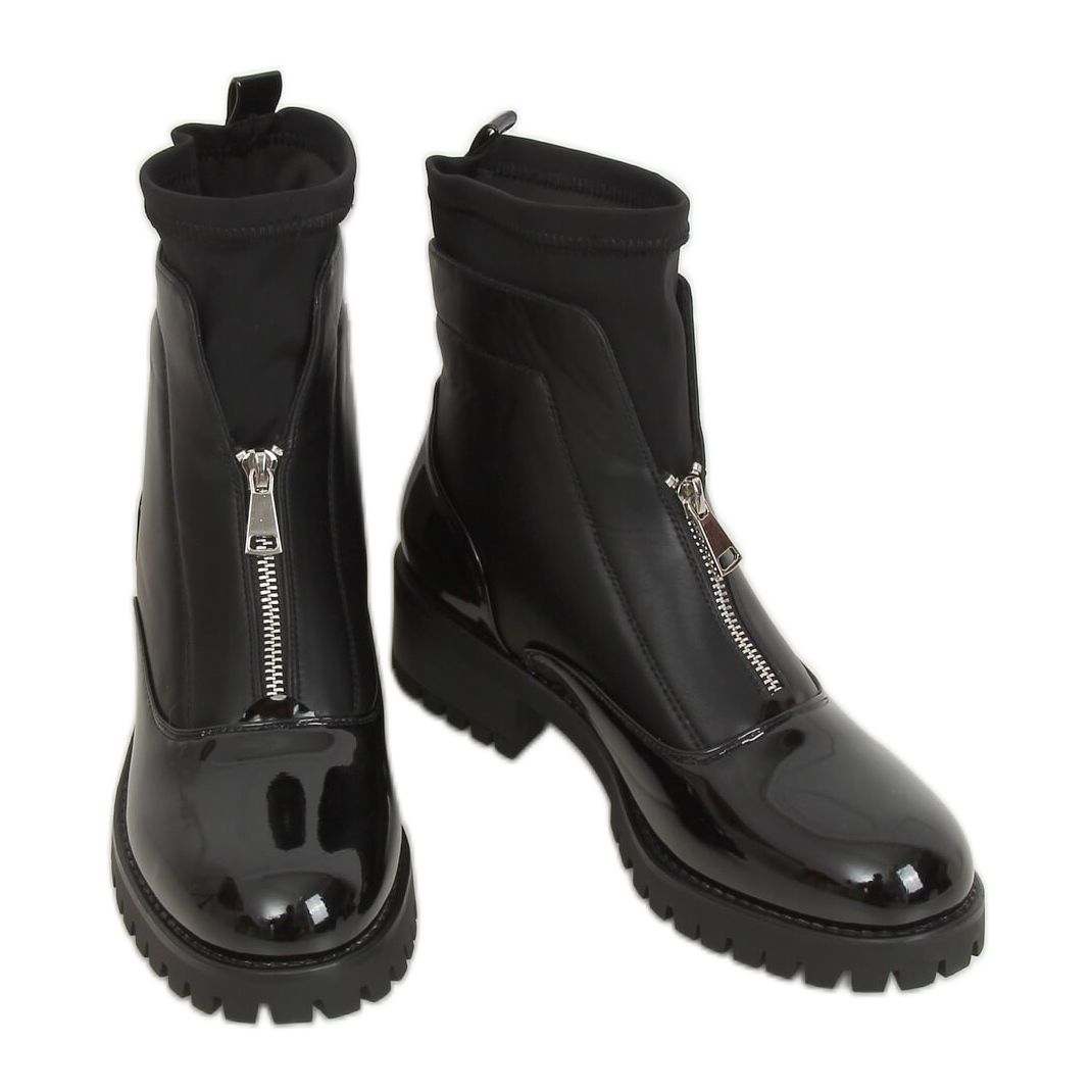 Inna marka Schwarz lackierte Stiefel NS178P Schwarz