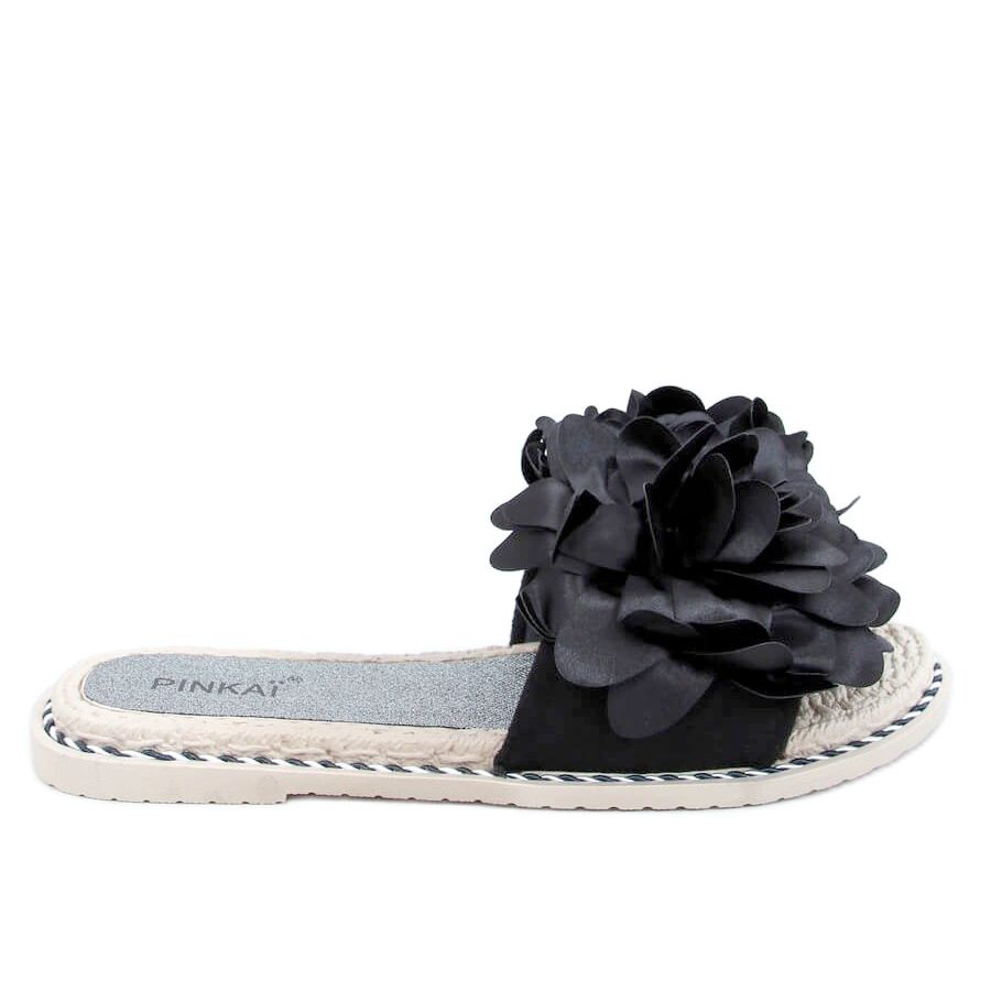 Details: Schwarz LS005 Schwarze Damenhausschuhe mit Blumen