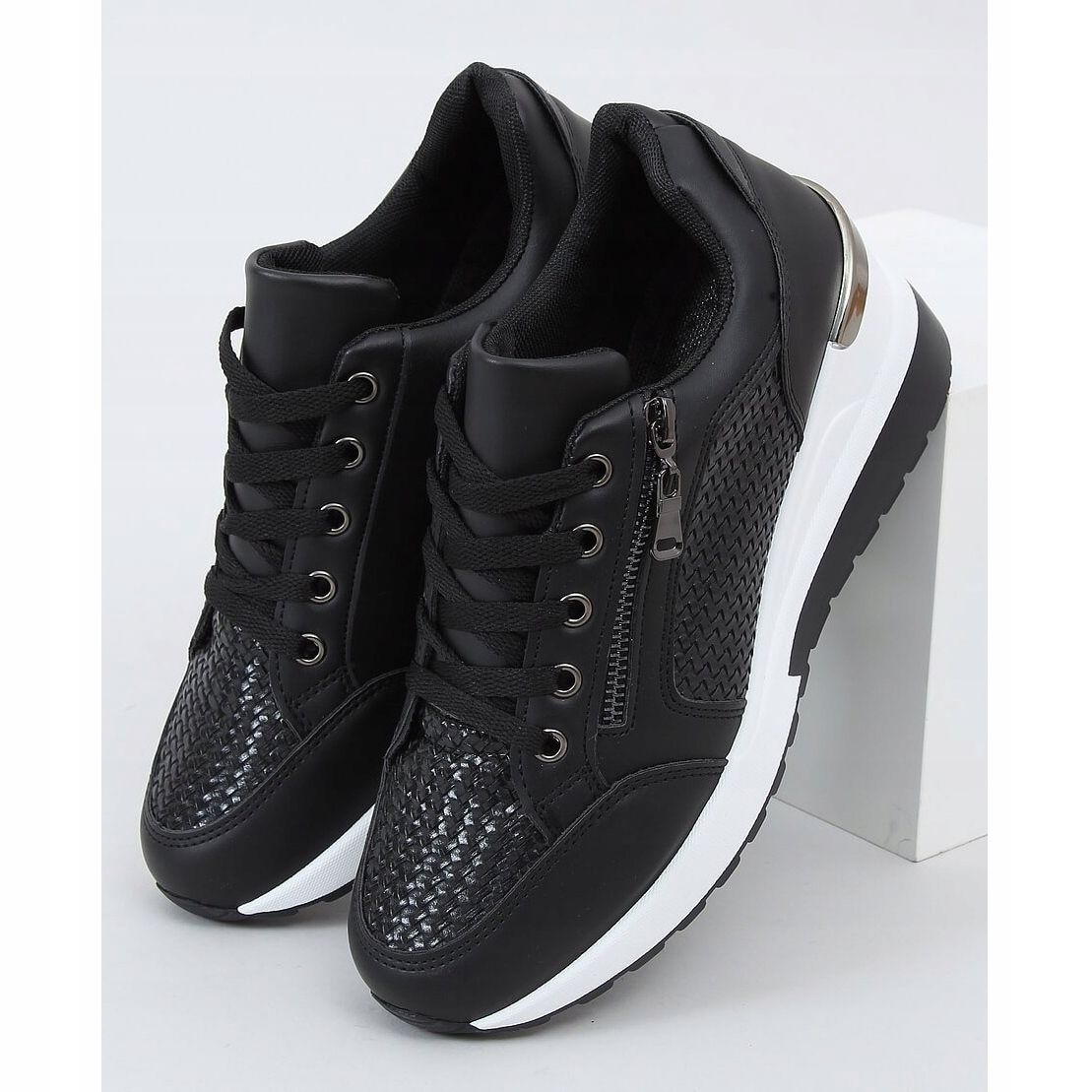 Inna marka Schwarz MY-2716 Schwarze Sportschuhe mit verstecktem Keilabsatz