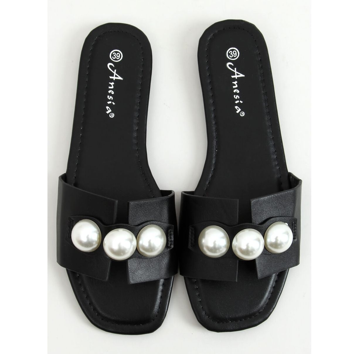 Inna marka Schwarz N-91 Schwarze Hausschuhe mit Perlen