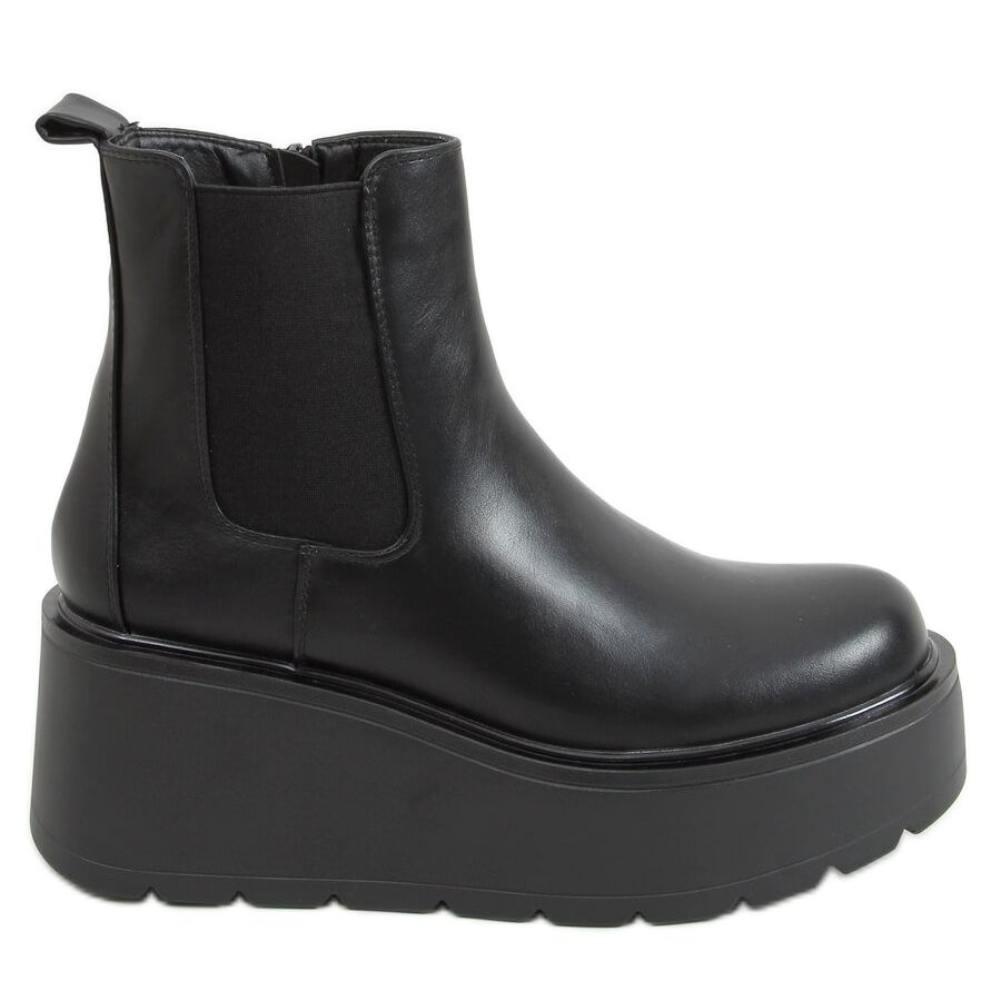 Inna marka Schwarz QT22P Schwarze Stiefel mit hohen Sohlen
