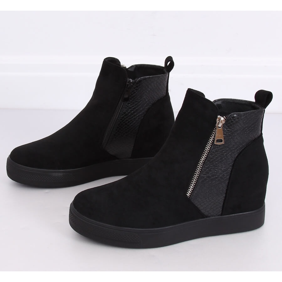 Schwarze RQ235 Schwarze Stiefeletten mit verstecktem Keilabsatz sind die perfekte Wahl für Frauen, die Wert auf Eleganz gepaart mit Komfort legen. Diese aus umweltfreundlichem Wildleder und Faux-Wildleder gefertigten Schuhe vereinen Stil und Umweltfreundlichkeit. Durch ihre klassische schwarze Farbe passen sie zu vielen Stilrichtungen, sowohl lässig als auch formeller.