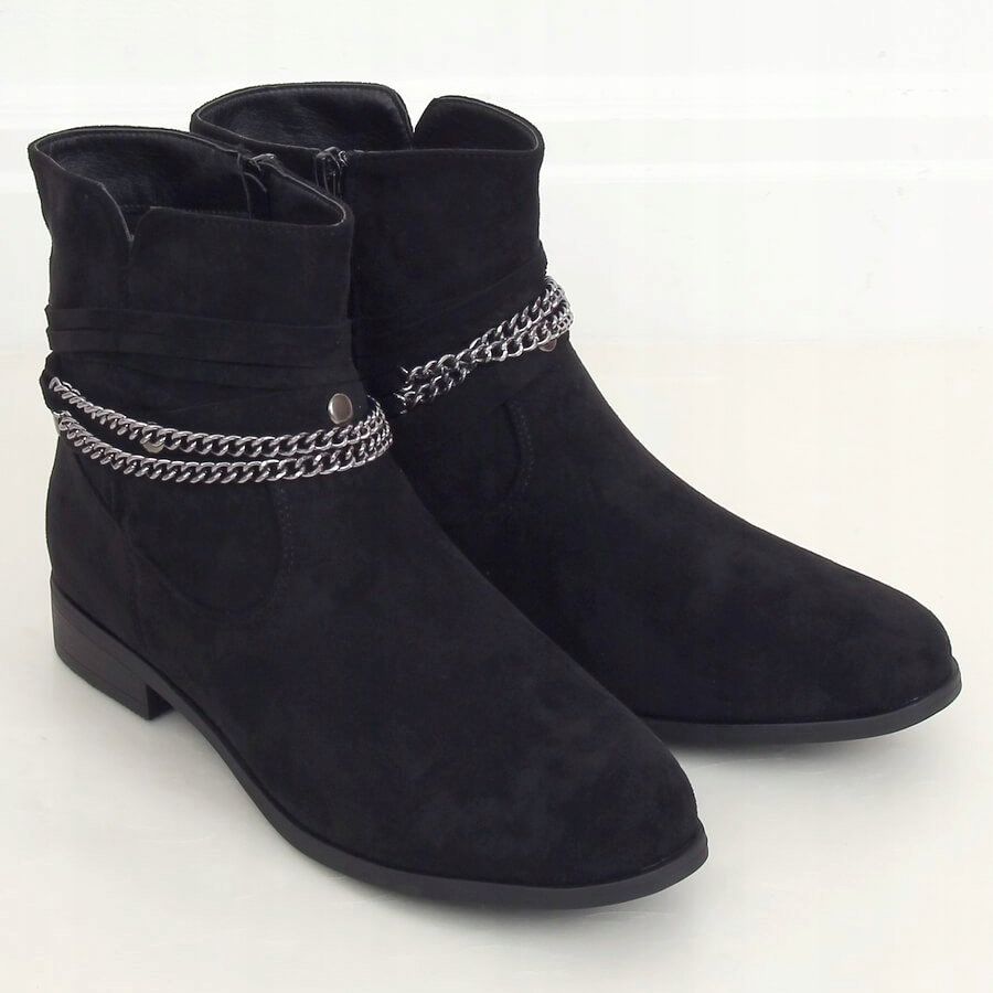 Entdecken Sie Eleganz und Komfort mit den schwarzen Damen-Stiefeletten aus Wildleder 688-201 Black. Diese einzigartigen flachen Schuhe begeistern mit einem modischen Design, das sich perfekt in das Alltags-Styling einfügt. Das formschöne Obermaterial, das den Knöchel umschließt, ist mit dezenten Streifen und Ketten verziert, was ihnen einen einzigartigen Charakter verleiht.
