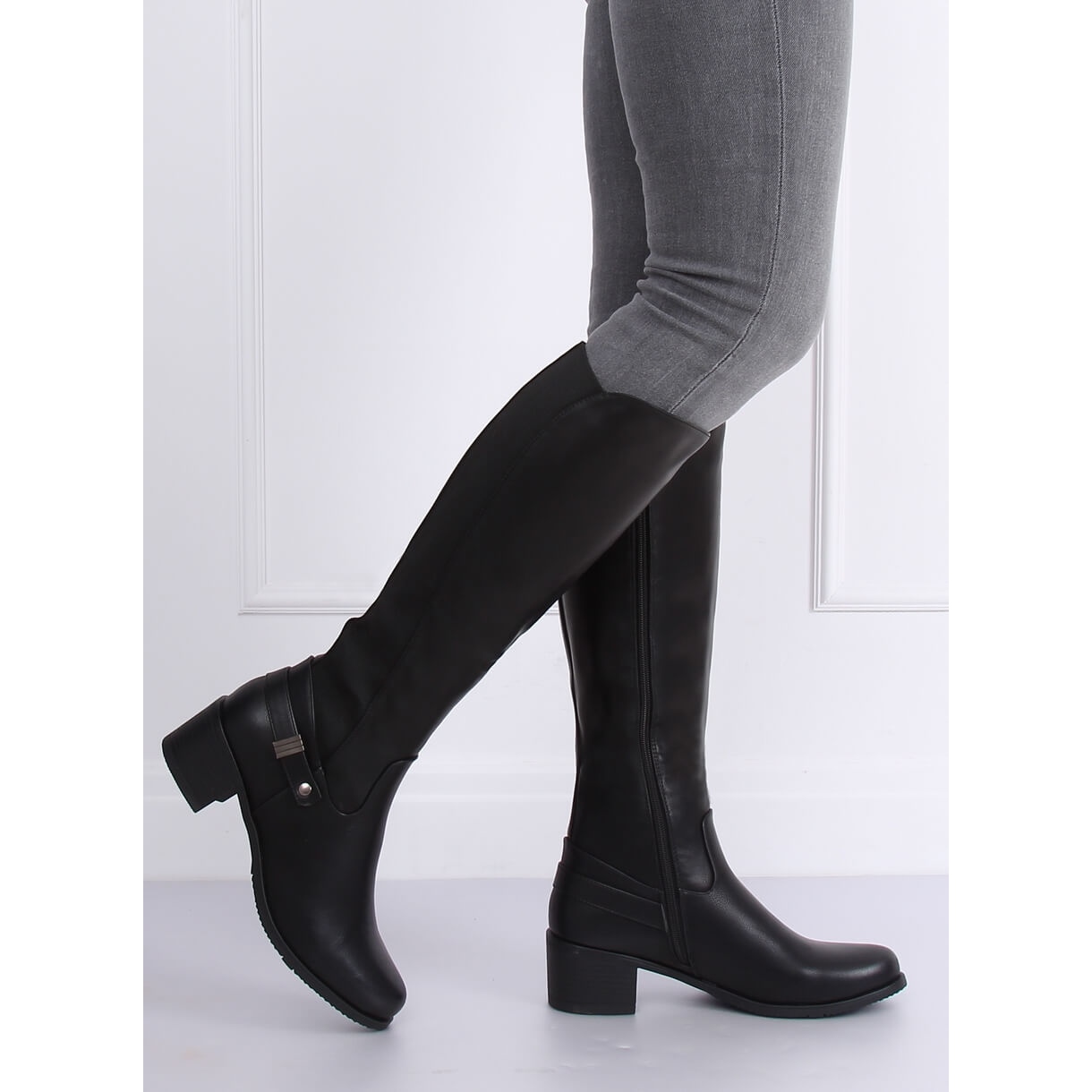 Elegante, schwarze Frauenstiefel in einer niedrigen, stabilen Ferse mit einer Höhe von 5,5 cm. Der klassische Schnitt mit einer runden Nase funktioniert jeden Tag großartig und für gedämpftere Stile. Der elastische Teil des Oberen garantiert eine bessere Anpassung des Kalbs, und die praktische Reißverschlussbefestigung erleichtert das Anlegen und Entfernen von Schuhen.