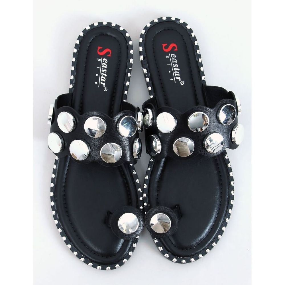 Inna marka Schwarz SK78P Schwarze Flip-Flops silber-