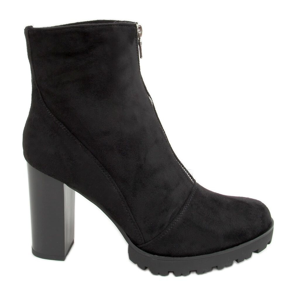 Entdecken Sie den neuesten Trend bei Damenschuhen – Wildleder-Stiefeletten mit breitem Absatz 688-A40 in klassischem Schwarz. Diese äußerst stilvollen Schuhe aus ökologischem Wildleder sind sowohl für den Alltag als auch für elegante Anlässe eine perfekte Wahl. Ihr attraktives Design fällt ins Auge und der silberne Reißverschluss vorne macht sie schick und modern.
