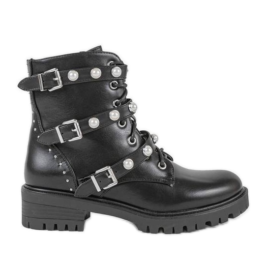Schwarz dekorierte Gama-Arbeiter sind die perfekte Wahl für den kommenden Herbst! Diese stylischen Stiefel aus hochwertigem Faux-Wildleder begeistern nicht nur durch ihr Aussehen, sondern sorgen dank der Innenisolierung auch für Wärme und Komfort. Das Obermaterial ist mit auffälligen Streifen verziert, die mit Strasssteinen besetzt sind, was ihnen einen charakteristischen, modischen Akzent verleiht.