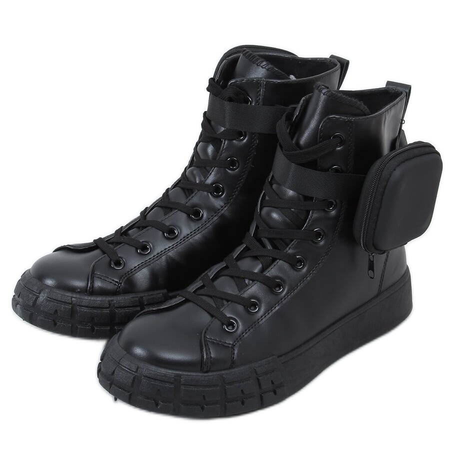 **Schwarze High-Top-Sneaker mit Tasche VL142 Black**