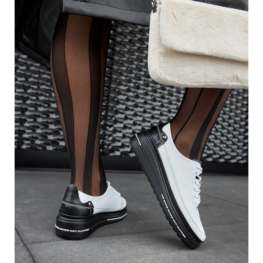 Die schwarze Gummisohle garantiert guten Halt und Stabilität, während der niedrige Keilabsatz (Höhe 4 cm) für dezente Eleganz sorgt und die Beine optisch verlängert. Die runde Spitze macht die Sneaker bequem und schränkt die Bewegungsfreiheit nicht ein, was sie perfekt für alltägliche Aktivitäten macht.