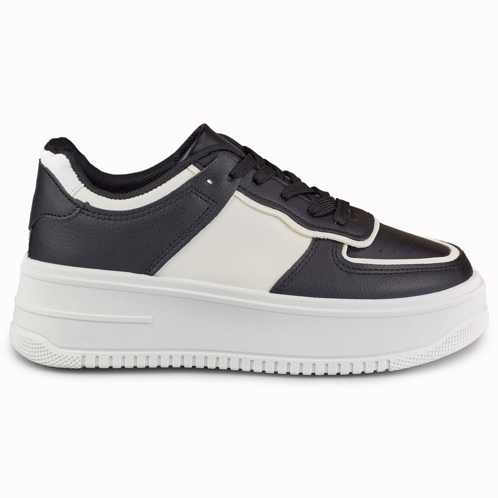 Details: Schwarz-weiße Plateau-Sportschuhe