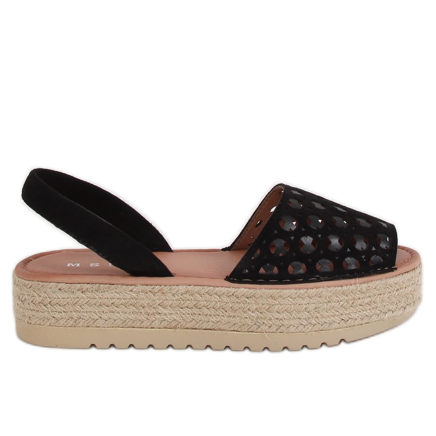 Details: Schwarz WH931 Schwarze, durchbrochene Espadrilles-Sandalen