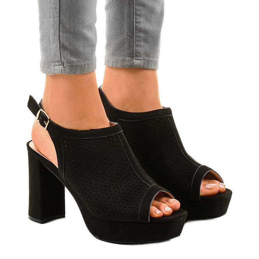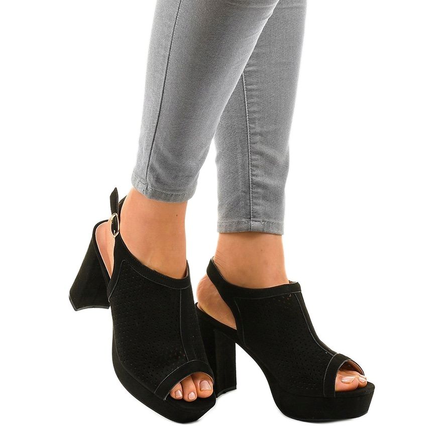 Die schwarzen, durchbrochenen Sandaletten 9R82 mit hohen Absätzen sind die perfekte Wahl für Frauen, die Stil mit Komfort verbinden möchten. Diese eleganten Schuhe passen perfekt zu Sommerstilen und verleihen ihnen Eleganz und Klasse. Sie bestehen aus hochwertigem, ökologischem Wildleder und sorgen nicht nur für ein ästhetisches Aussehen, sondern auch für Langlebigkeit.
