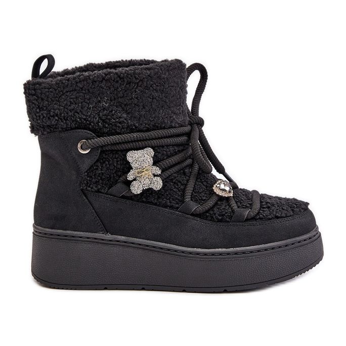 Details: Schwarze Almatiza Damen-Schneestiefel mit Nadeln und Fell