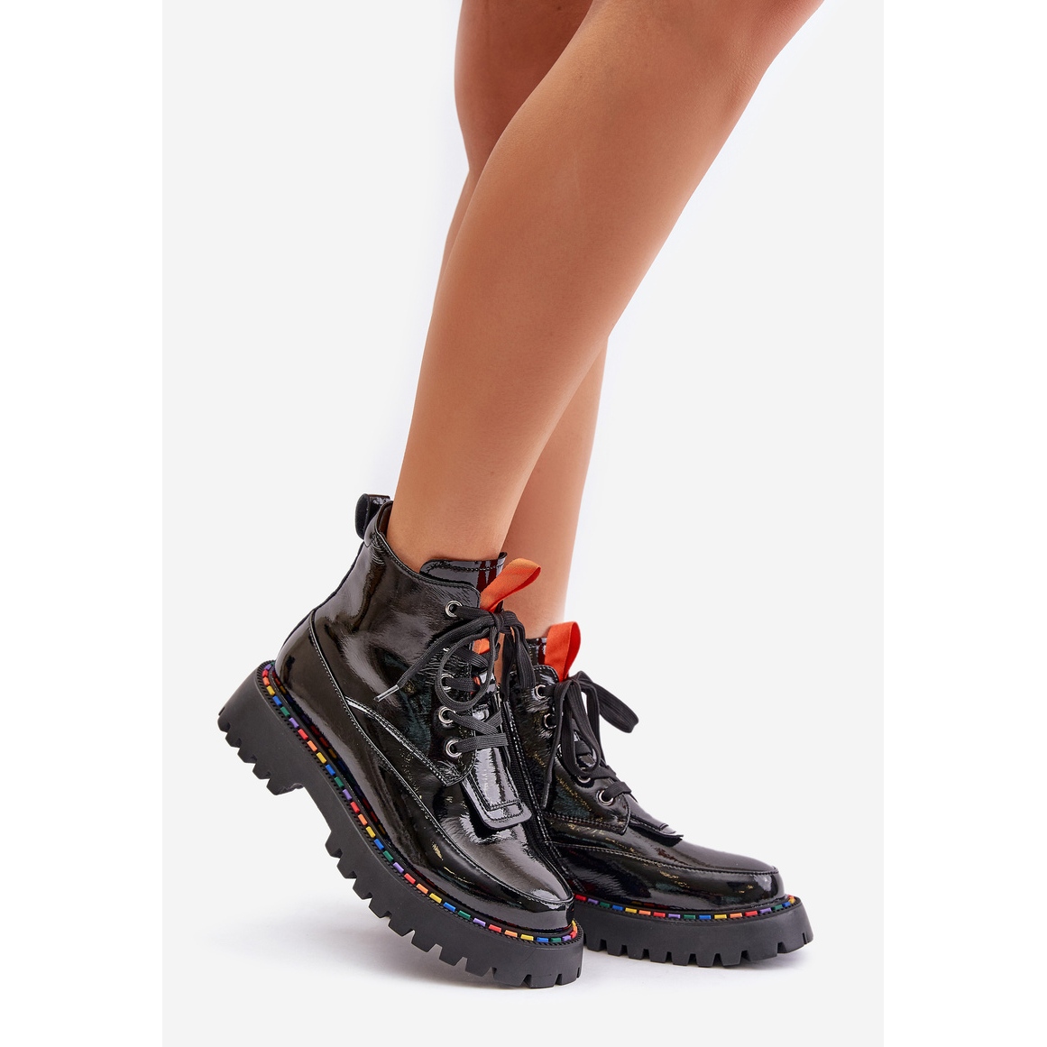 Inna marka Schwarze Anafra-Arbeiter-Stiefeletten aus Lackleder mit Reißverschluss