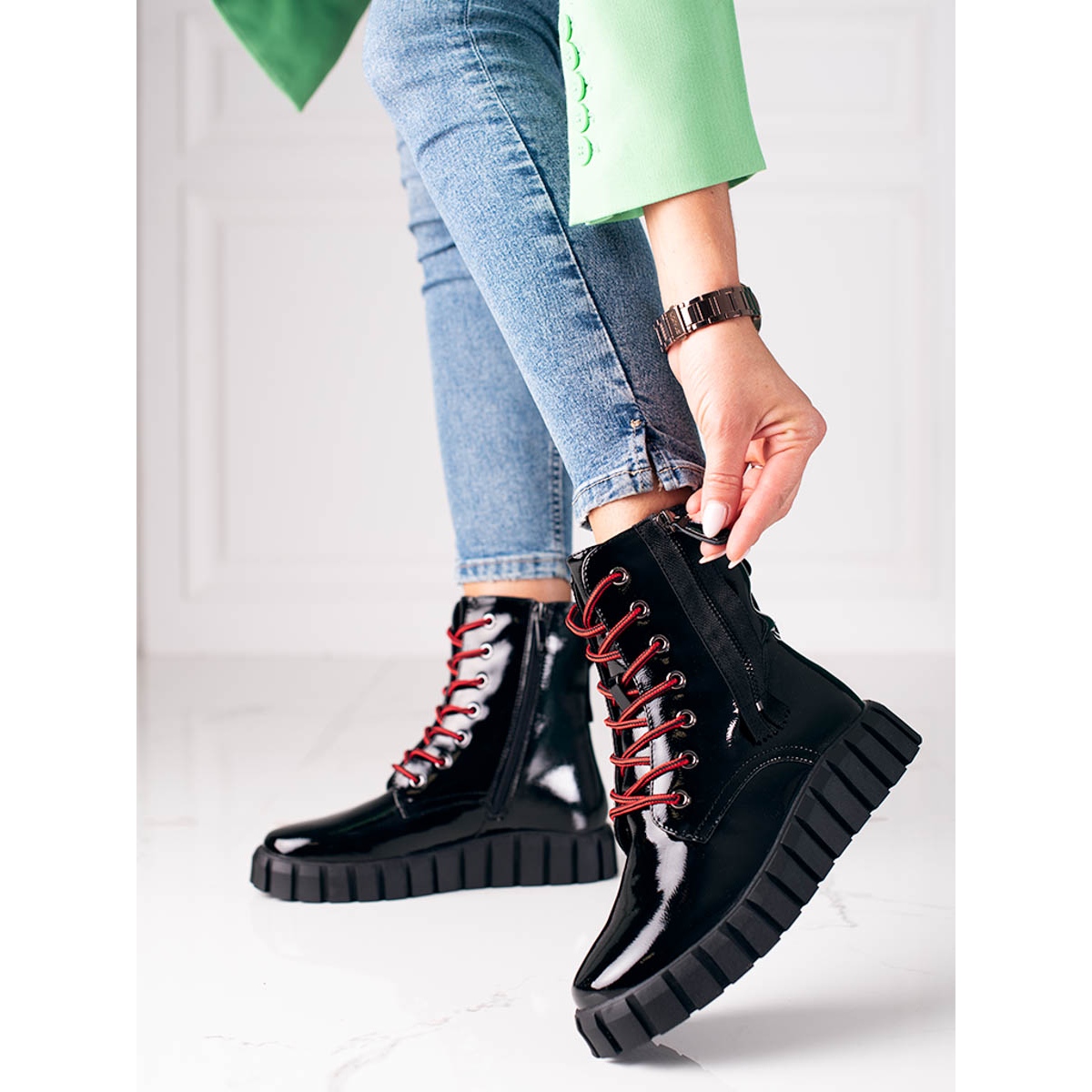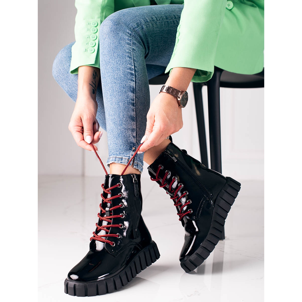 Wenn Sie sich für schwarze High-Top-Worker auf der Potocki-Plattform entscheiden, legen Sie Wert auf Qualität, Stil und Komfort. Diese Schuhe eignen sich perfekt für kältere Tage und sind ein Muss in der Garderobe jeder Frau, die Wert auf Mode und Komfort legt. Bestellen Sie sie noch heute und unterstreichen Sie Ihre Einzigartigkeit!