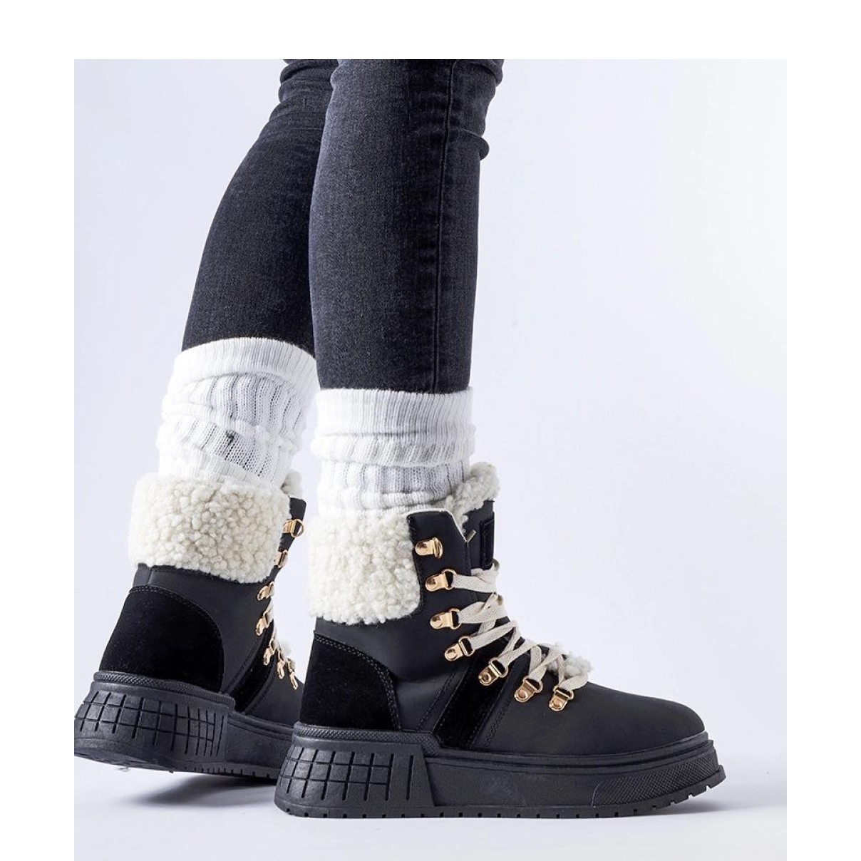 Schwarze Arbeiter auf einer massiven Plattform sind eine modische und funktionale Wahl für jede Frau, die Stil mit Komfort kombinieren möchte. Diese Stiefel aus hochwertigem ökologischem Leder sehen elegant und modern aus. Ihr Spitzen -UP -Modell ermöglicht eine perfekte Passform zum Fuß, und eine 5 -cm -Gummi -Sohle bietet einen hervorragenden Griff auf verschiedene Oberflächen.