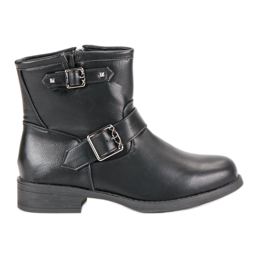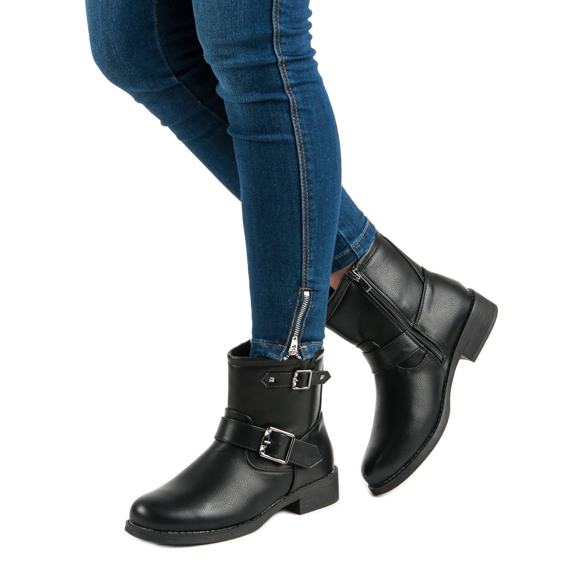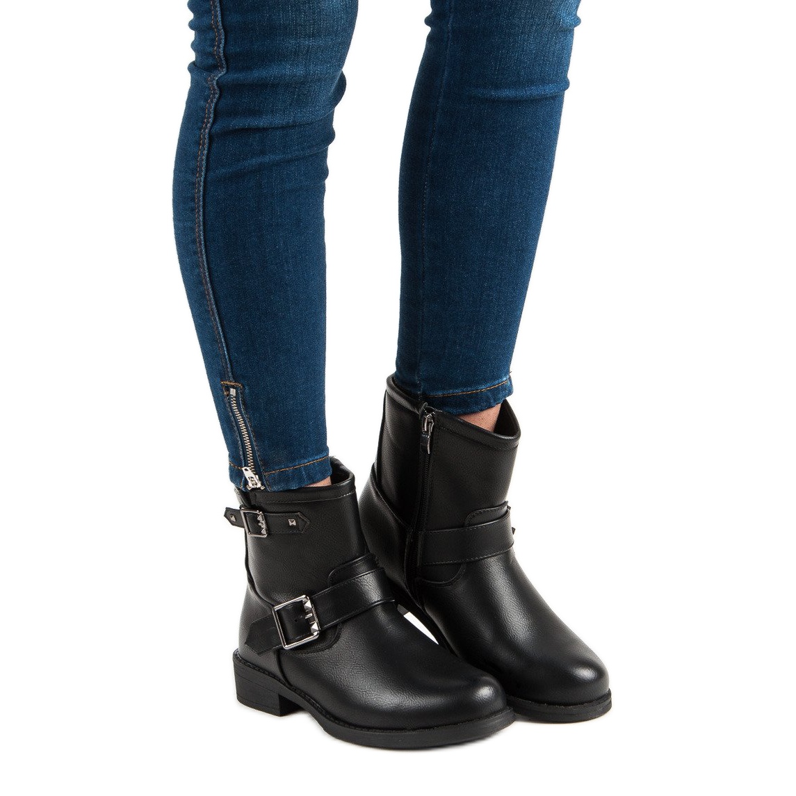 Wir präsentieren schwarze Arbeiterstiefel, die eine perfekte Ergänzung für jede Frau sind, die einen mutigen Motorradstil schätzt. Diese soliden Schuhe werden in Ihrer Garderobe mit Sicherheit hervorstechen und Ihrem Alltags-Styling das gewisse Etwas verleihen, das Sie suchen.