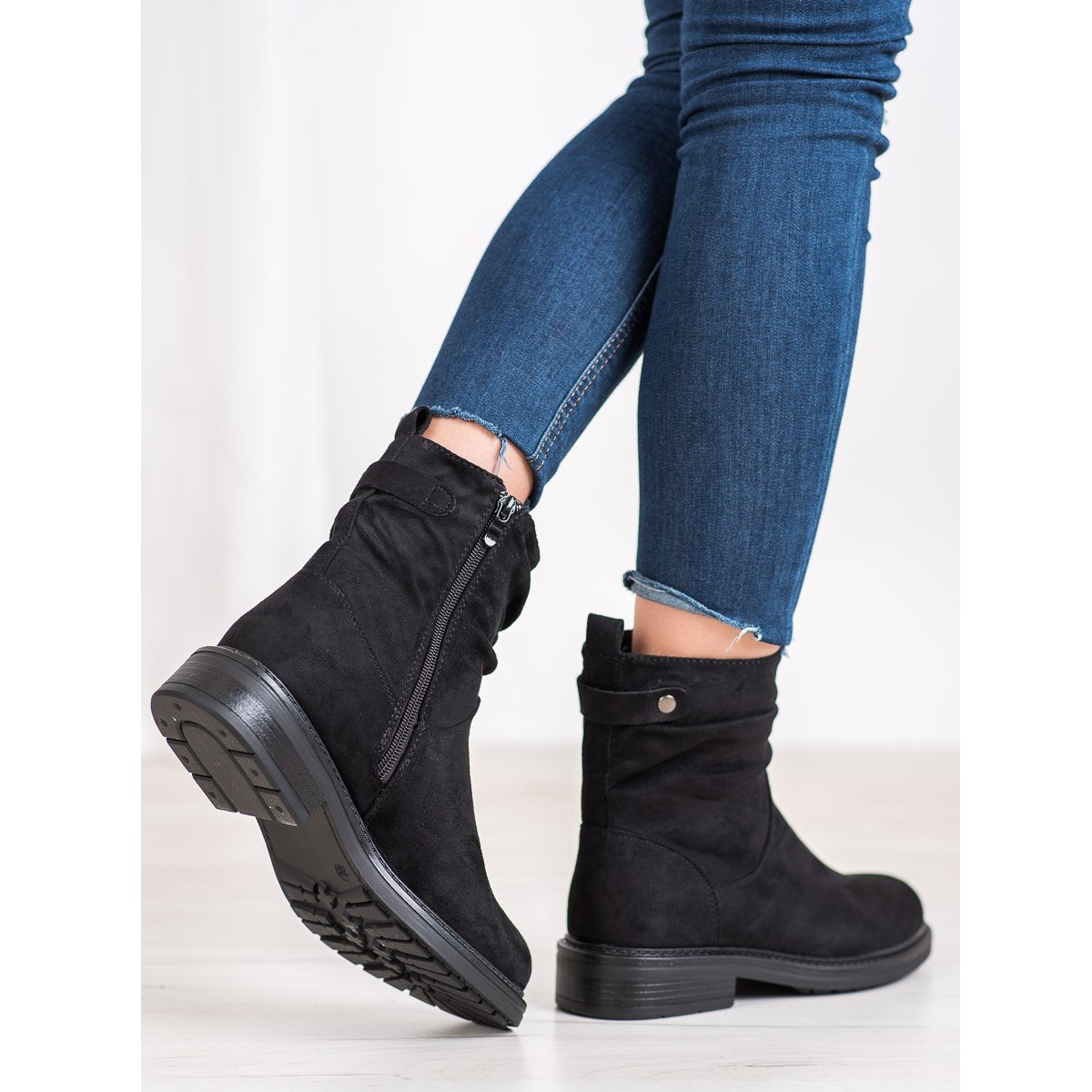 Wir präsentieren schwarze Arbeiterstiefel der Marke J. Star, die modisches Design und Funktionalität vereinen. Diese Wildleder-Damenstiefeletten aus ökologischem Material sind die perfekte Wahl für jeden Anlass, insbesondere in der Herbst-/Wintersaison.