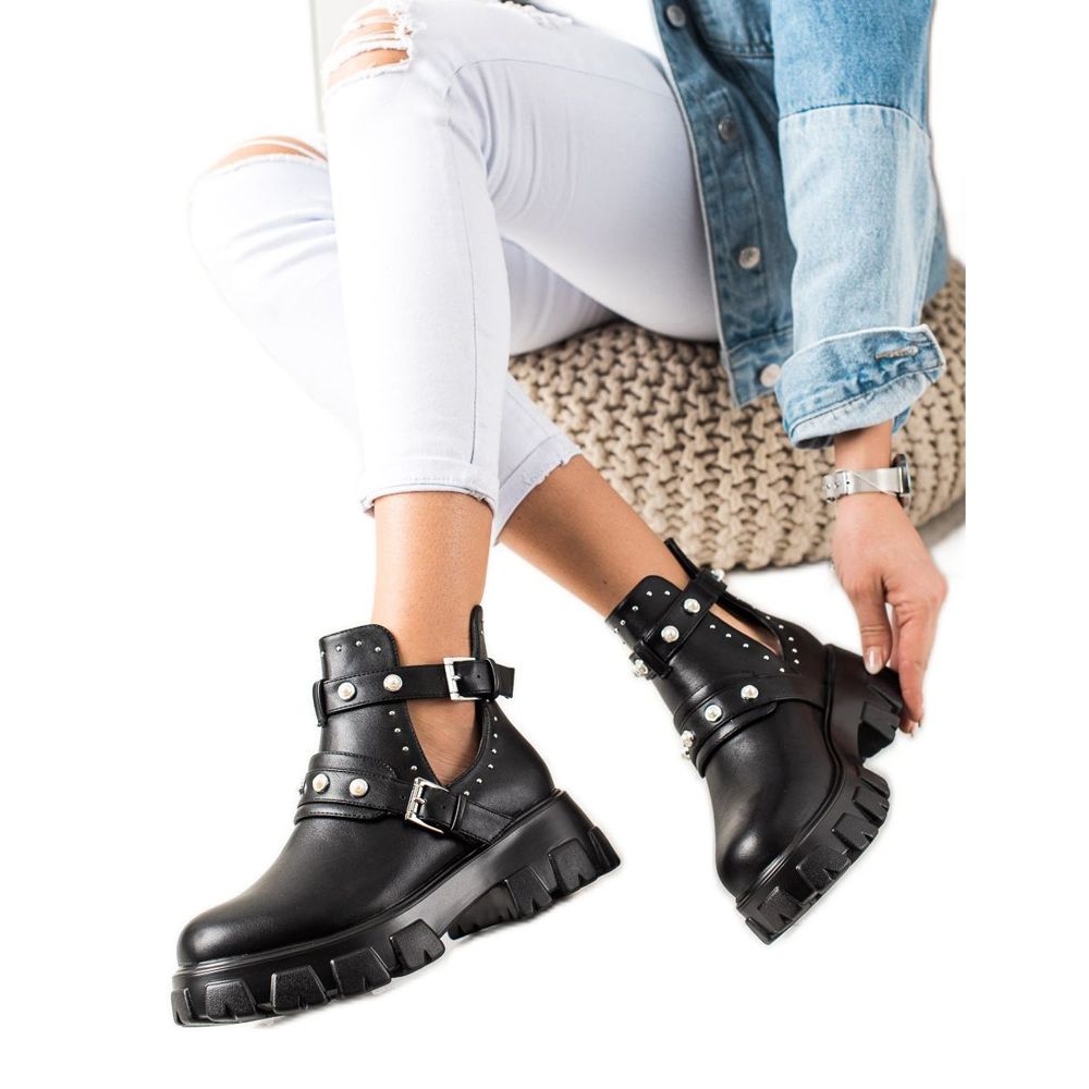 Wir präsentieren schwarze Arbeiterhosen mit Cut-out und Strasssteinen von Bestelle, die jedes modische Herbst- und Winter-Styling perfekt ergänzen. Diese einzigartigen Damen-Stiefeletten vereinen lässigen und rockigen Stil und sind damit die perfekte Wahl für Alltagsoutfits mit einem Hauch Extravaganz.