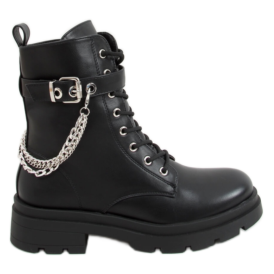 Wir präsentieren Arbeiter mit Ketten in Schwarz – das Modell RQ381 Black, das mit Sicherheit zu einem unverzichtbaren Element Ihrer Garderobe wird! Diese Schnürstiefeletten für Damen zeichnen sich durch eine hohe Sohle aus, die ihr Charakter verleiht und sie äußerst stilvoll macht. Das originelle Design mit abnehmbaren Ketten ist ein Modehit, den Sie nicht verpassen dürfen!