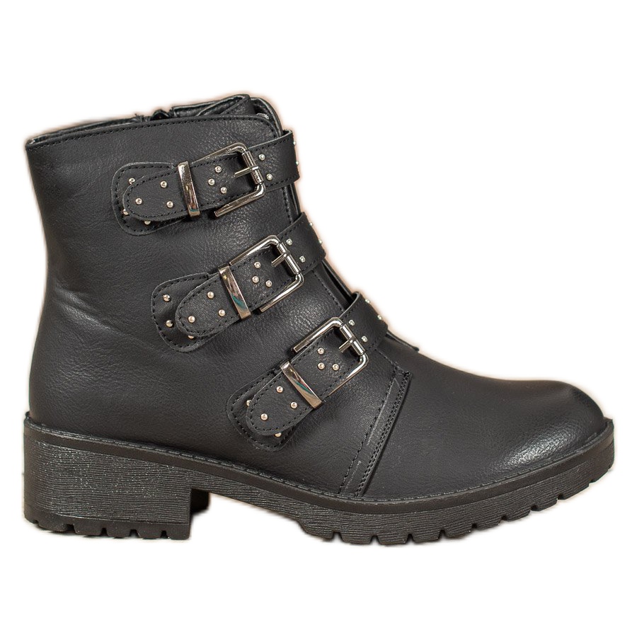 J. Star Worker in Schwarz sind die perfekte Wahl für Frauen, die Wert auf Stil und Komfort legen. Aus hochwertigem ökologischem Leder gefertigt, vereinen diese Schuhe modisches Design und Funktionalität. Ihr rockiger Charakter wird durch dekorative Schnallen und silberne Strasssteine unterstrichen, die für Originalität sorgen.