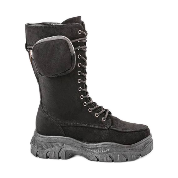 Ästhetisch gefertigtes, glattes und schwarzes Schuhwerk ist perfekt für kühlere Frühlings- oder Herbsttage. An kälteren Tagen funktioniert eine warme Isolierung auf jeden Fall und sorgt für den Komfort Ihrer Füße. Der Komfort wird auch durch solide Verschlüsse – Schnürsenkel und Reißverschluss – ergänzt, die die Anpassung der Schuhe an die individuellen Bedürfnisse erleichtern.