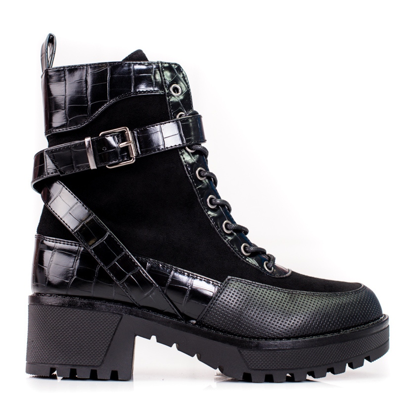 Durch den Reißverschluss und die Schnürung lassen sich diese Stiefel nicht nur leicht anziehen, sondern ermöglichen auch eine individuelle Anpassung an Ihre Bedürfnisse. Das vorherrschende Muster ist klassisches Schwarz, wodurch sie zu vielen verschiedenen Stilen passen.