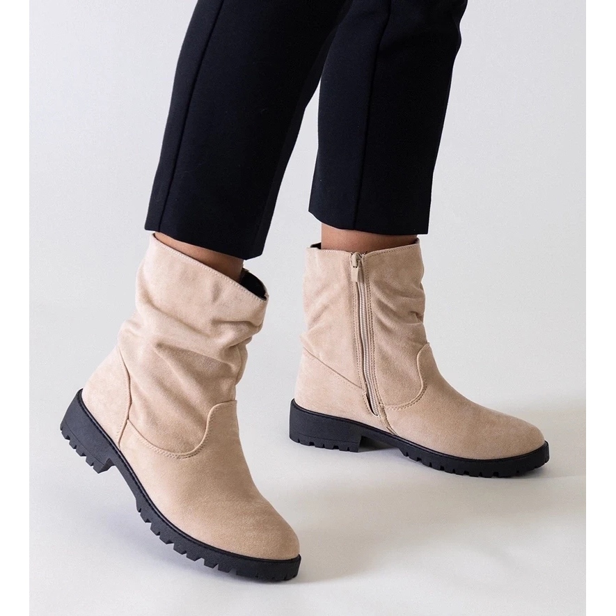 Schwarze Arbeiter haben einen Reißverschluss, was es einfacher macht, sie anzuziehen, und die runde Nase verleiht Komfort. Ein zusätzlicher Vorteil ist die Isolierung in Form von Öko -Pelz, die den ganzen Tag um Ihre Hitze kümmert. Die Höhe der oberen 17 cm und eine Plattform mit einer Höhe von 5 cm bietet nicht nur eine hervorragende Unterstützung, sondern auch eine stilvolle Figur.
