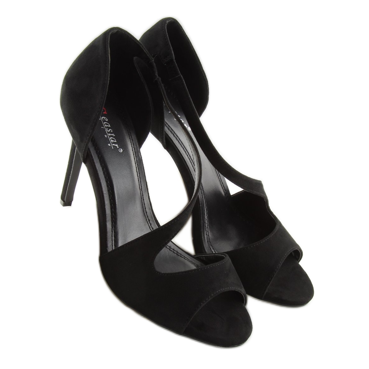Die schwarzen asymmetrischen Pumps C90 sind die perfekte Wahl für Frauen, die Komfort mit Eleganz verbinden möchten. Diese klassischen schwarzen Sandalen aus ökologischem Wildleder sorgen nicht nur für einen stilvollen Look, sondern auch für Tragekomfort.