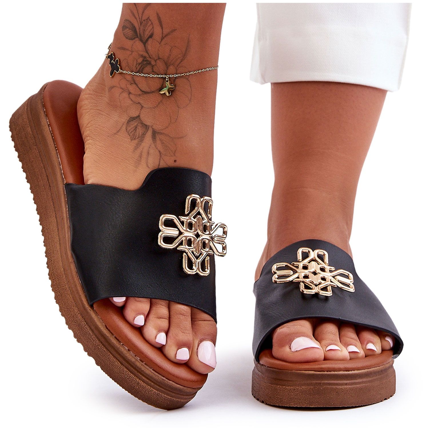 Details: PG1 Schwarze Azera-Plateauhausschuhe für Damen mit Verzierung