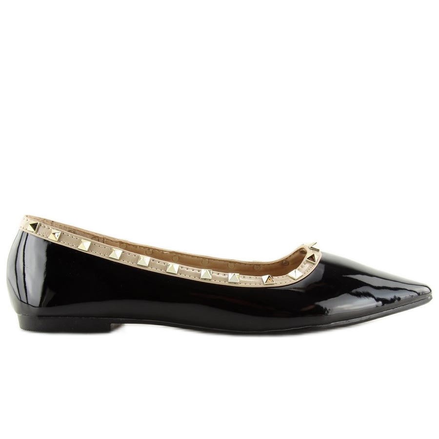 Schwarze Ballerinas mit Nieten 127-16 Black sind einzigartige Damenschuhe, die Eleganz mit modernem Stil verbinden. Diese aus ökologischem Lackleder gefertigten Ballerinas fallen nicht nur durch ihre schlanke Form auf, sondern auch durch auffällige Details in Form von Nieten, die ihnen Charakter verleihen.