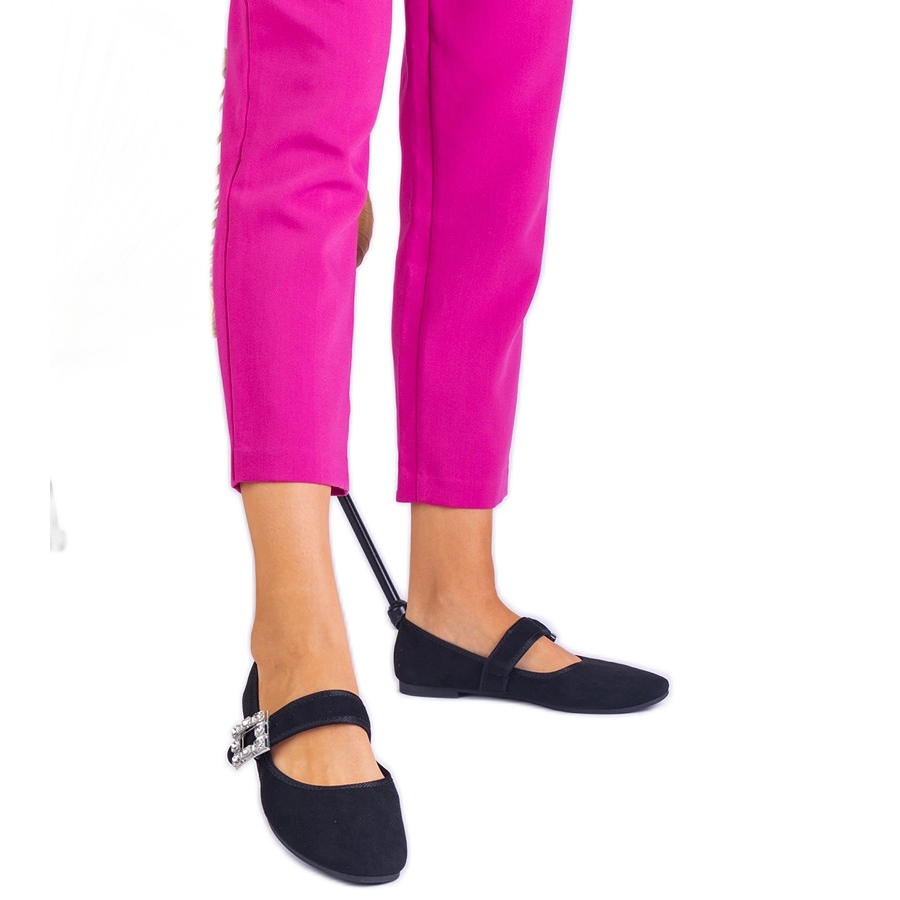 Details: Schwarze Ballerinas mit einer Schnalle mit Kristallen dekoriert