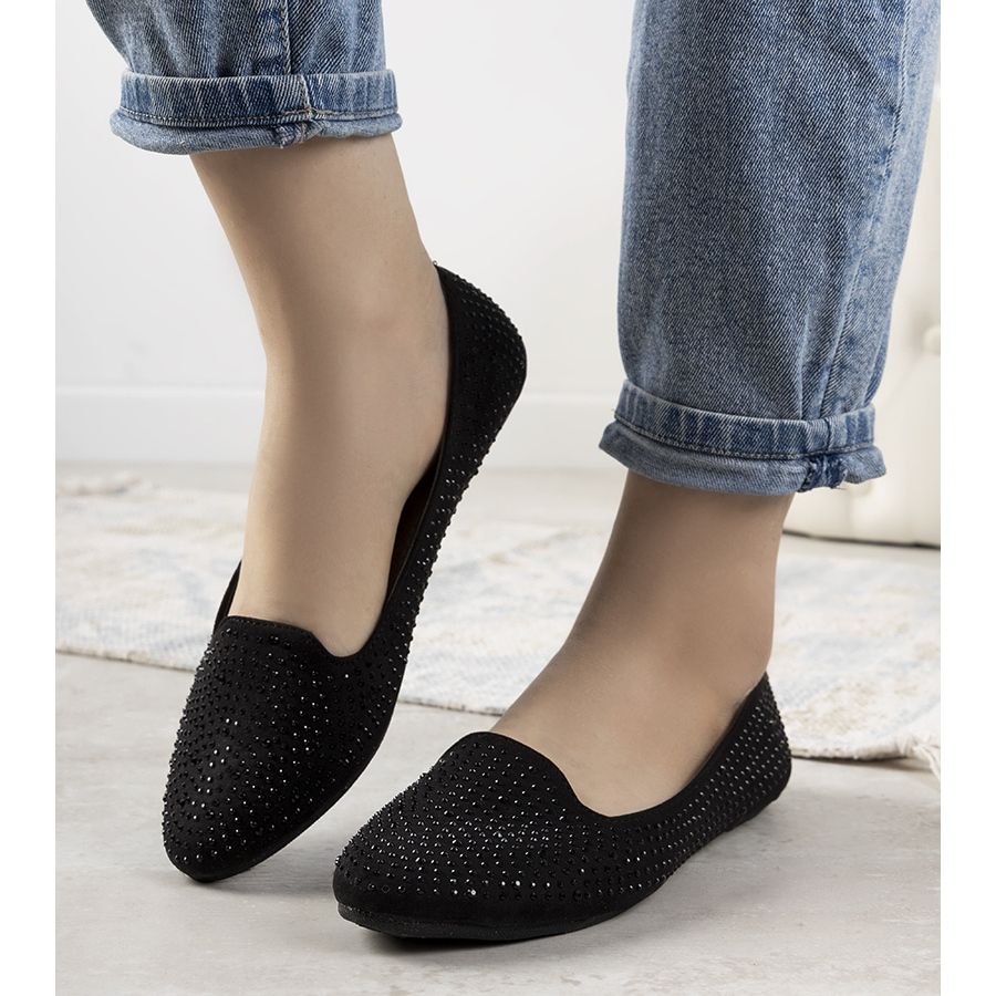 Inna marka Schwarze Ballerinas verziert mit Harriette Zirkonia
