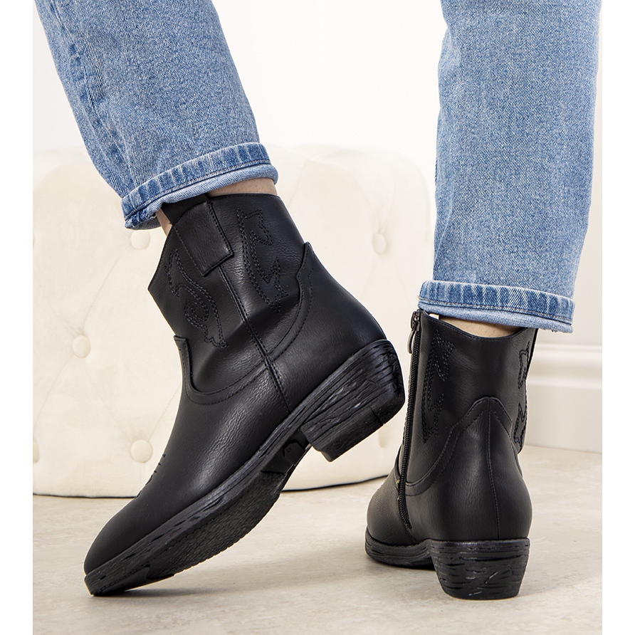 Die schwarzen isolierten Cowboystiefel von Belda sind die perfekte Wahl für Liebhaber von Modetrends, die Stil mit Komfort verbinden möchten. Sie bestehen aus ökologischem Leder und wirken dank dezenter Stickmuster, die ihnen einen einzigartigen Charakter verleihen, äußerst elegant.